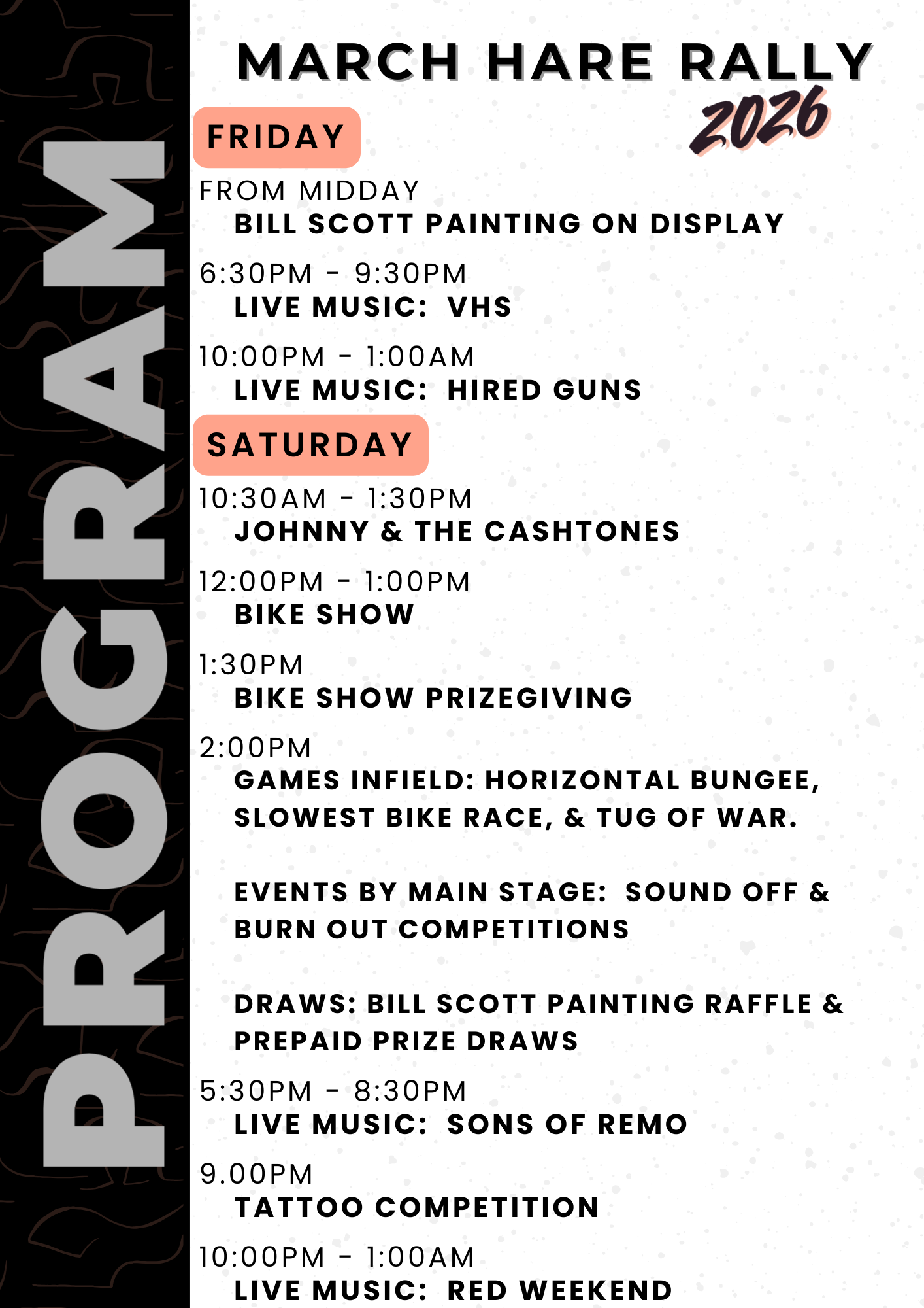 The 2026 Rally will be held on March 6th and 7th. If you have been to a March Hare Rally before, we thank you for coming along, and to everyone who hasn’t yet had the Hare experience…. make it this one!